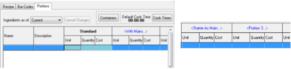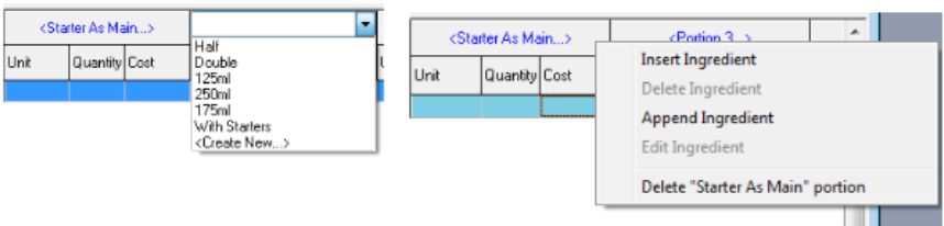 3. The system may be configured to include multiple portions of food items so that they can be sold either in different sizes or if course printing is in use to adjust the course Position of a dish when it is printed to a kitchen printer e.g. if a starter is served with main courses.