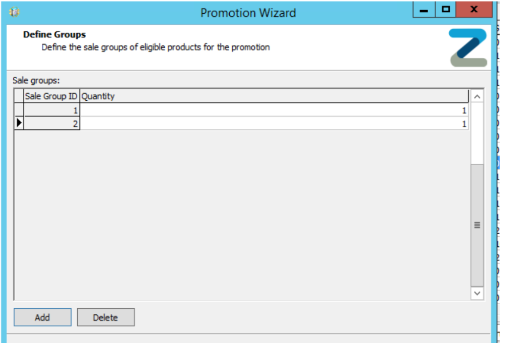 - Set the number in the group (this is the number of products that need to be selected in each group in the promotion, e.g. in the below example we are doing a BOGOF promotion, meaning we have two groups and one count in each group.