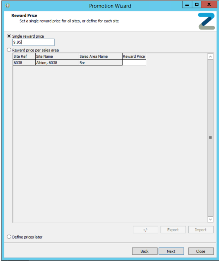 When using the Multi Buy promotion, you can select the Single Reward Price, which will apply to all sites included in the promotion. Alternatively you can select Reward Price and enter a different price next to each site in the promotion