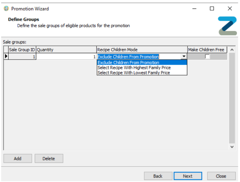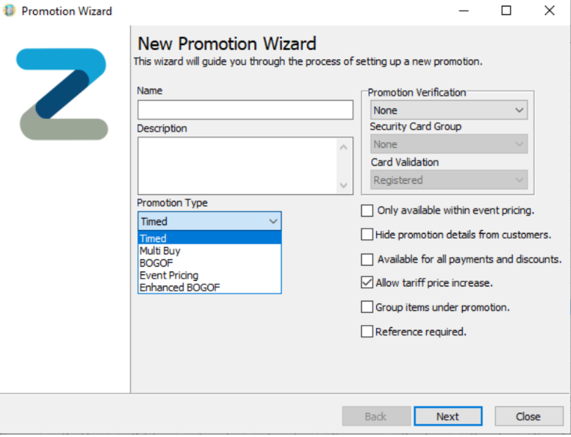 Open the Promotion Wizard and select Enhanced BOGOF from the dropdown menu.