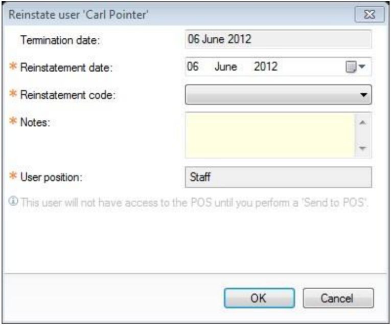 Press the Reinstate button followed by the Yes button to reinstate the user.