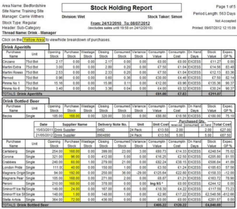 Refer to the below to aid with understanding the range of data included on the Stock Holding report.