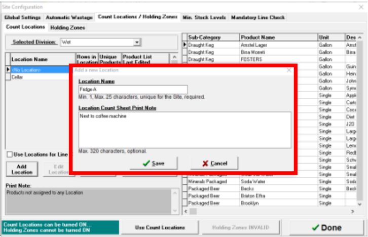 5. Enter the Name of the Count Location, e.g. Cellar, Spirit Locker etc.