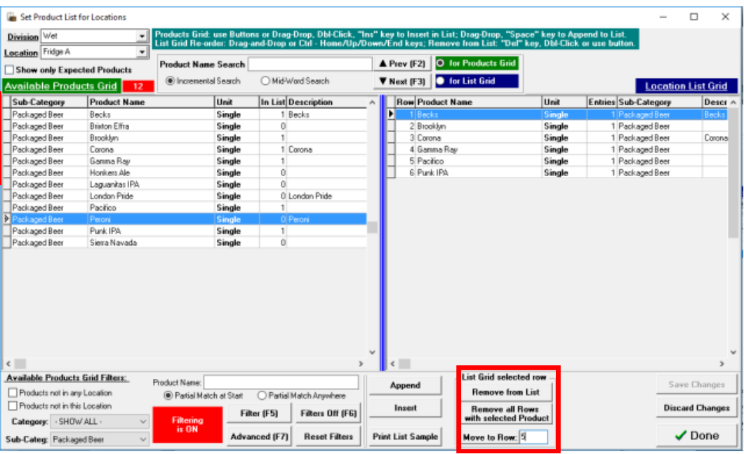 12. If you need to add a product to a particular line of the count sheet, e.g. an item on to line 5 specifically, use the "Add to Row" button to add it to the exact location