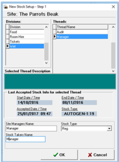 3. Select the Division and the Thread that you are counting, and enter the mandatory details at the bottom of the screen.