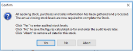 8. Once your count sheets have printed select Abort at the next step to ensure that your progress is not saved. The stock will have to be re-created once all stock has been counted and the day has been finalised.
