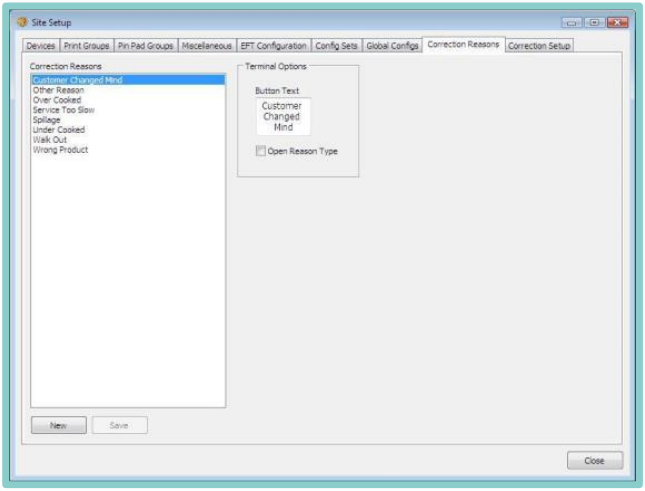Each correction method type can also have up to 16 correction reasons which can be used for reporting if required.