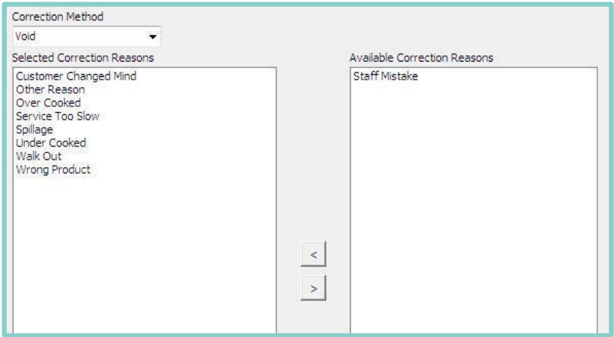 Finally, using the arrows, move the reason from the right to the left to join any other correction types