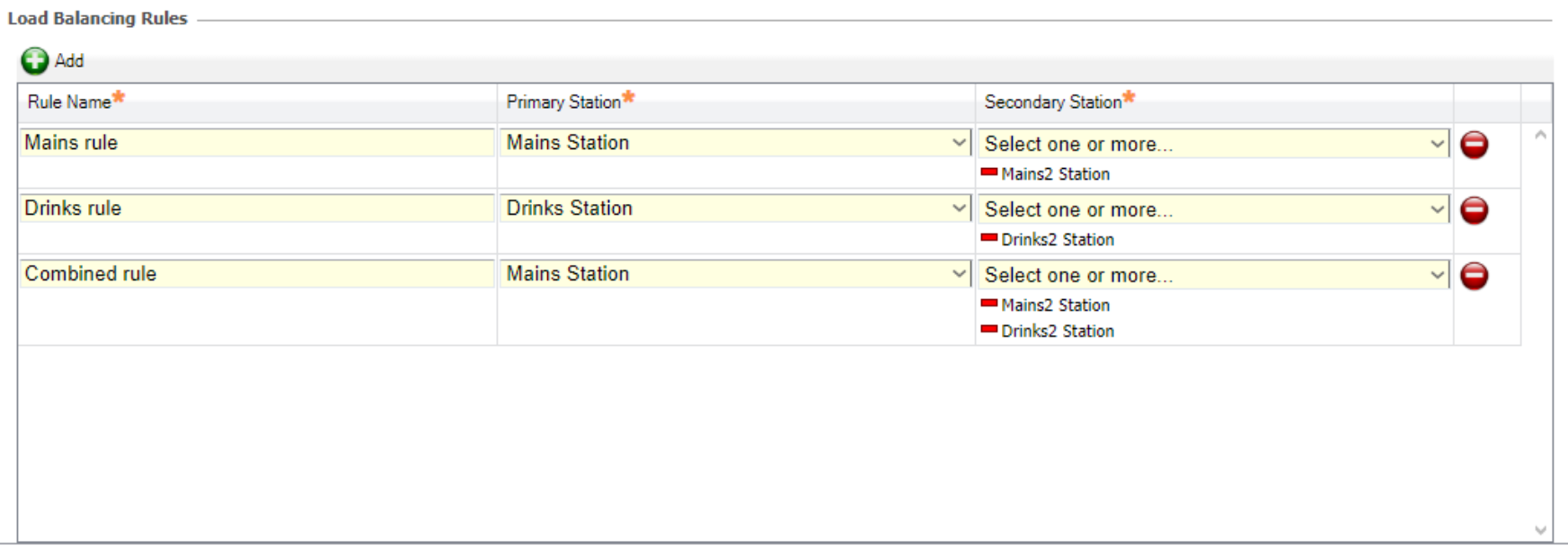 The Primary Station should be identical to a Routing Rules ‘To Station', incoming orders routed to this Station can then be distributed by Load Balancing. This will be the first Station that an incoming order will be distributed to, followed by Secondary Stations.