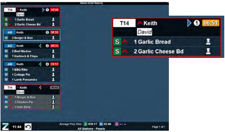 From the panel view on a kitchen screen (if enabled at head office), an order can be prioritised manually.
