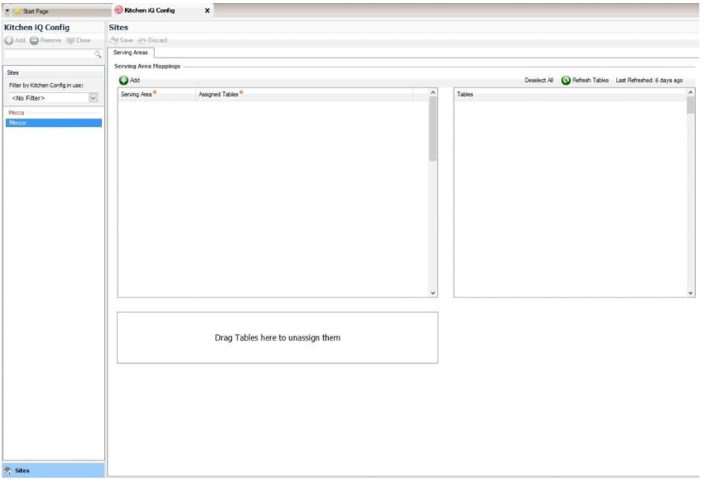 7. Select Add below Serving Area Mappings. These will be selectable from the drop down box, depending on the serving areas which have been created for the site’s KiQ configuration.