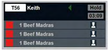 Where multiple courses form part of an order, the second/third courses are displayed on the kitchen screen in separate tickets and are on hold until the first course is complete. For example, once the starter has been served, the mains course is released from hold and the timer is reset to zero. -