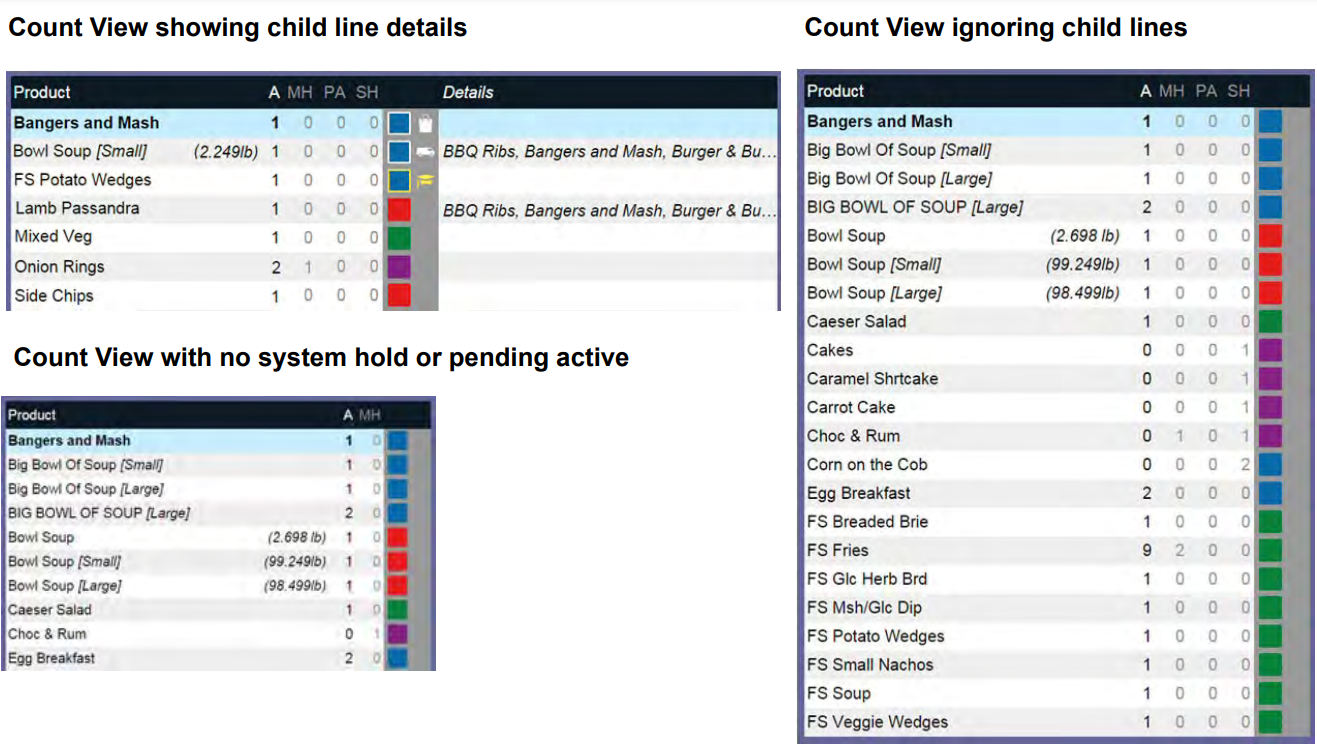 The Count View lists ordered items individually, and separately identifies the number of items of each status type.