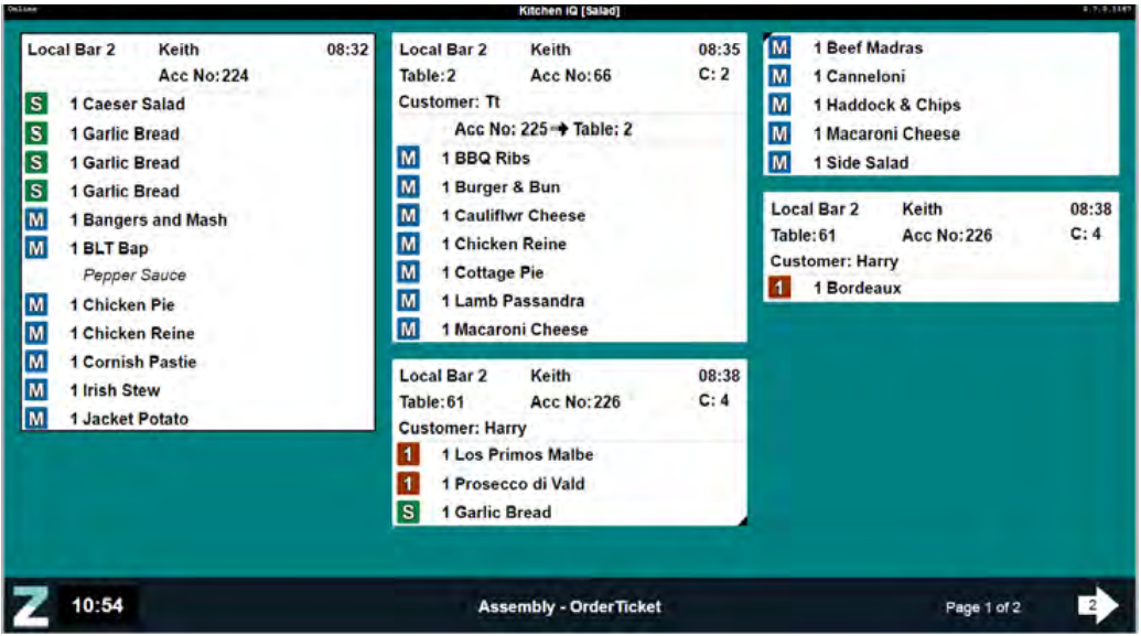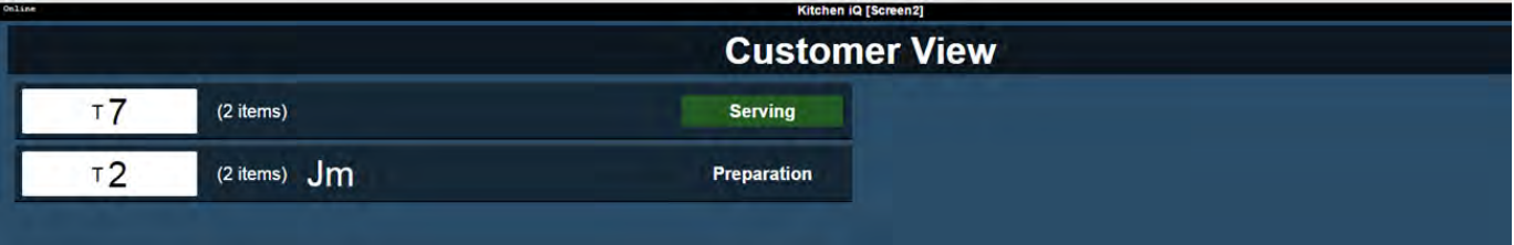 The customer view displays a complete list of all active orders in the order they appear in the kitchen and grouped by order stage, i.e. Ready, Assembly and Preparation as shown.