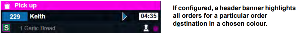 - Head office may also configure an order destination to display a header banner highlighted in a particular colour to draw attention to all orders for a particular order destination.