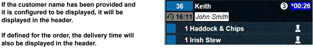 is displayed in the top right of each order ticket. Either the timer box or the ticket header can be configured