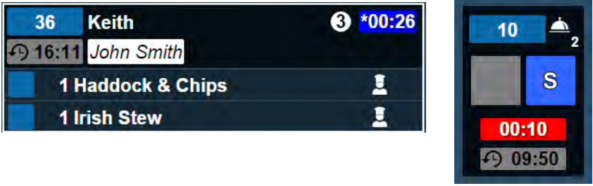 When this happens, after the order is sent to the kitchen the order is displayed on the kitchen screen display with both the delayed order time and the time the order was sent to the kitchen