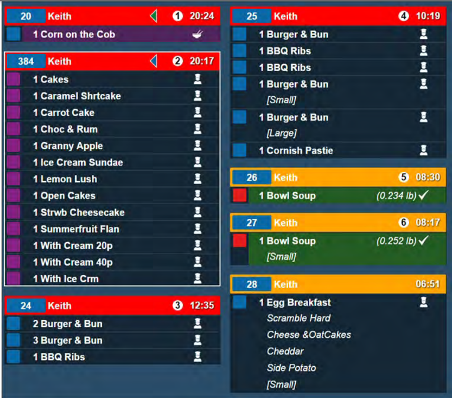 If configured at head office, the header of an order can adopt the colour of the warning or alert instead of the timer box. This makes the warning/alert more prominent: