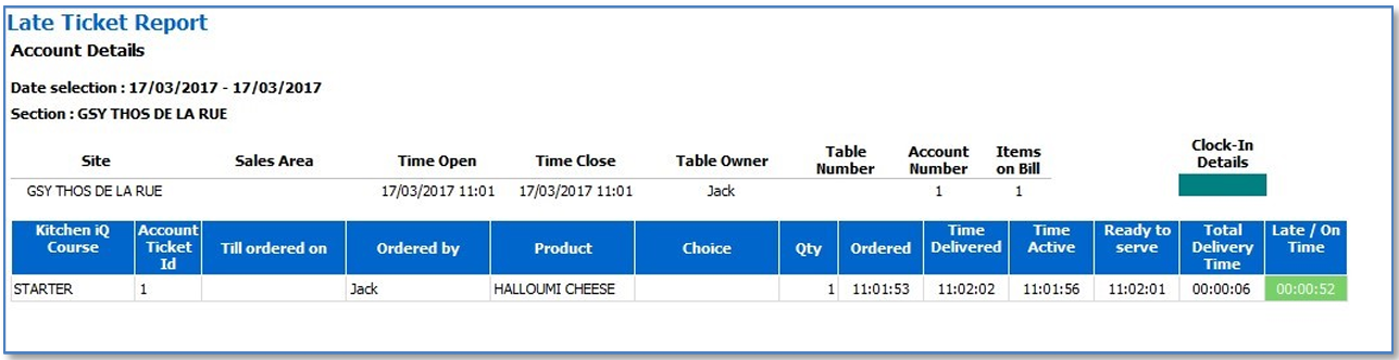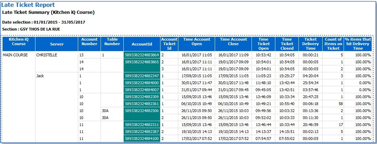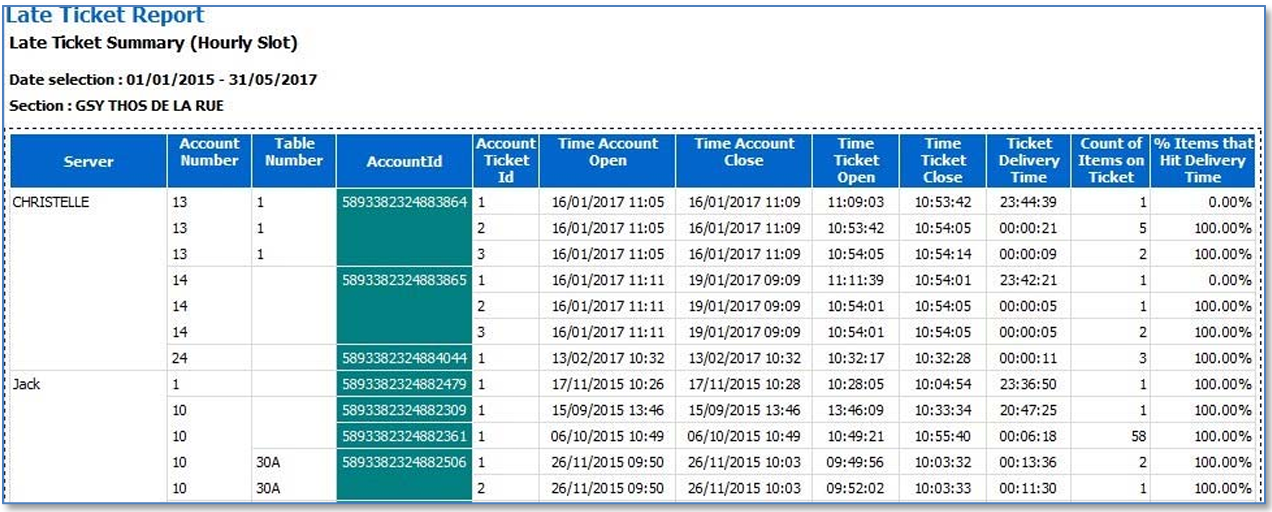 • Late Ticket report - The Late Ticket report identifies late tickets with additional detail on items, courses and staff involved.