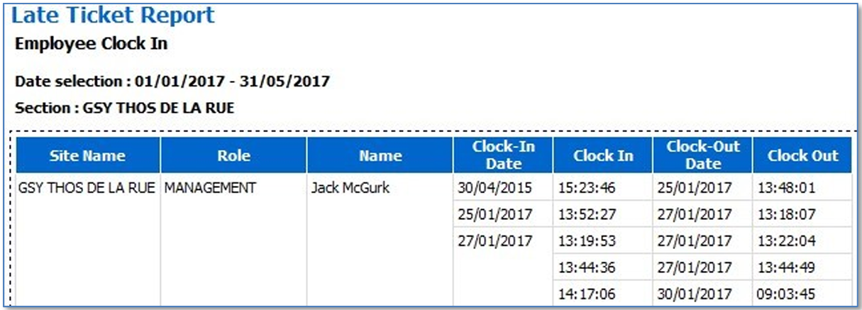 Late Ticket report