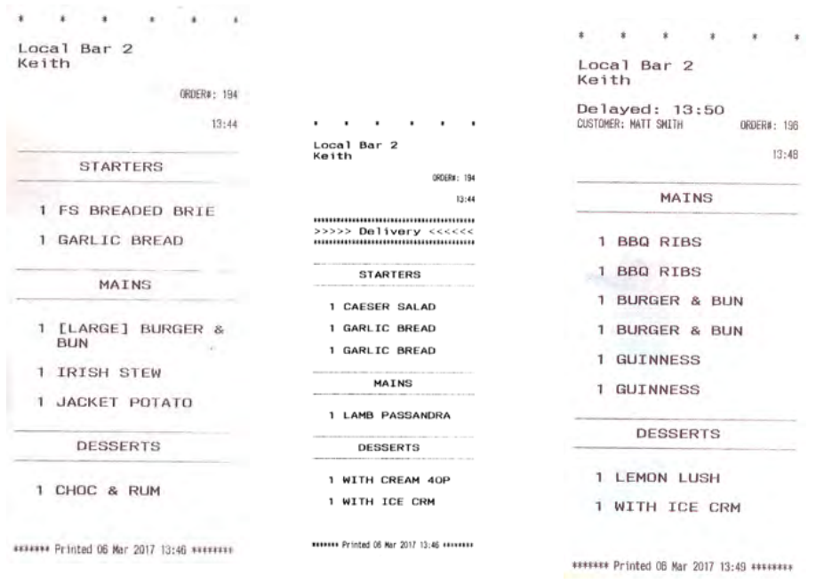 Printing selected tickets is only possible when suitable printers have been configured for a site and these printers associated with the relevant kitchen screens.