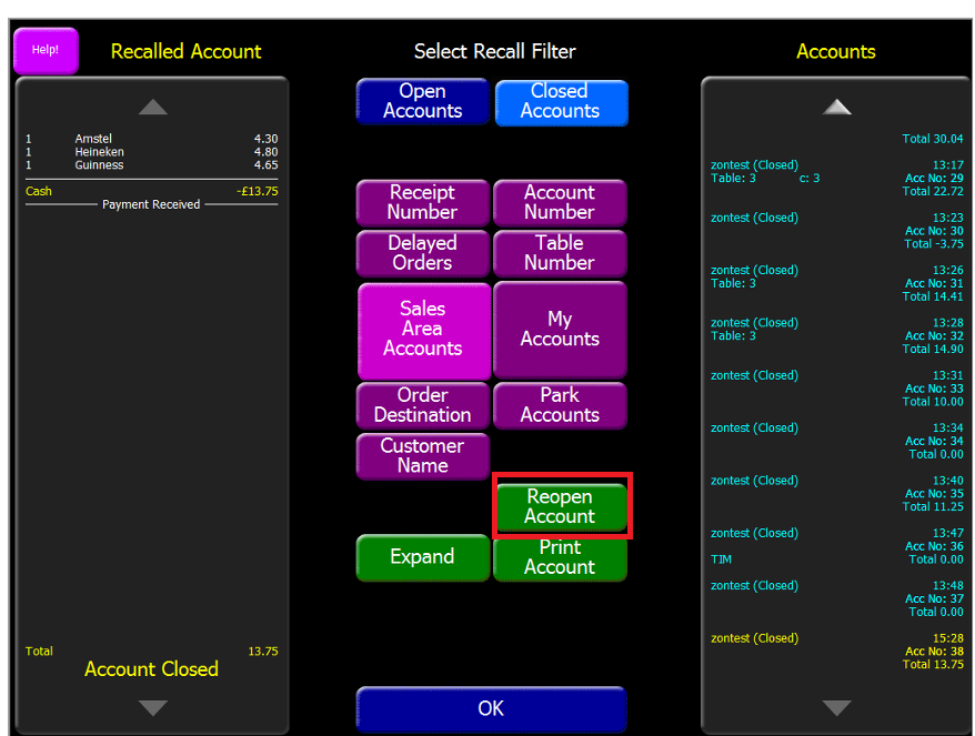 5. Click Reopen Account. You will only be able to reopen accounts from the current days trading session.