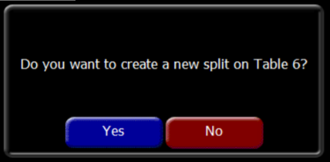 Confirm by pressing the Yes button, indicating that you wish to create a new split on the table.
