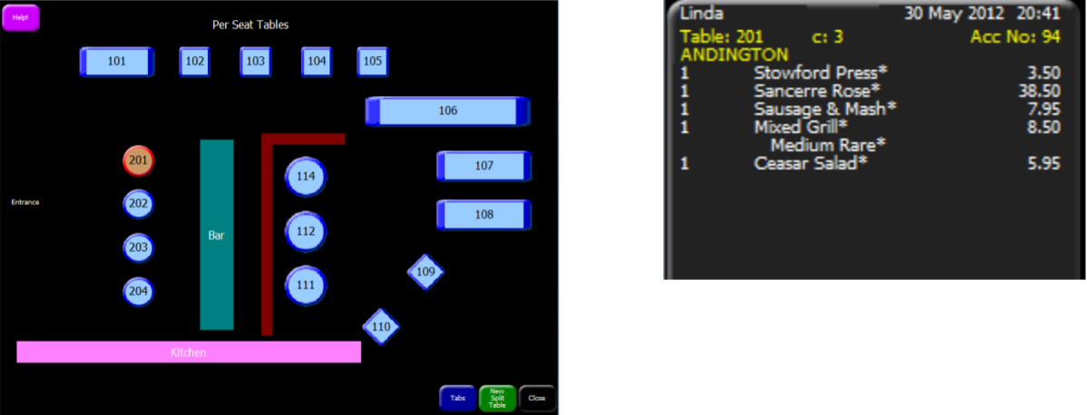Orders can be placed on tables so that the correct customer bills can be managed and food orders that print to the kitchen show the table number that the customer is sitting at.