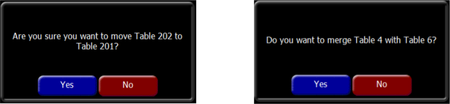 Confirm by pressing the Yes button to move or merge the table.