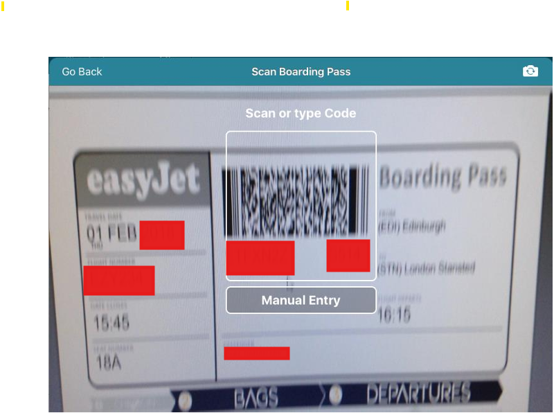 If Flight Capture is enabled for your site, when you select a payment method you will be prompted to scan a barcode. In an airport environment this would be your boarding card, but you can also use this functionality wherever you want to capture information from a barcode. The title of this window can be defined in Aztec.