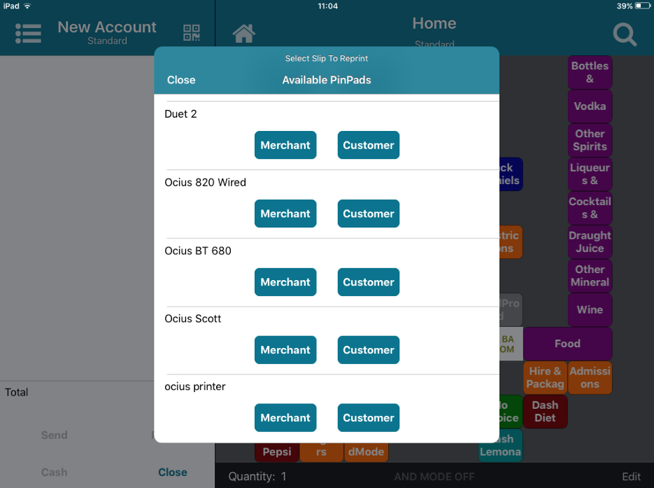 Staff can re-print customer and/or merchant slips for the last completed Ocius payment transaction. This allows receipts to be reprinted in the event of a print failure.