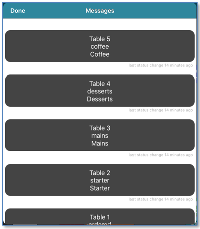 These messages are set up and sent from iZone Tables as Alerts to table statuses. These messages will be updated if the table status changes, or if the guest is checked out.