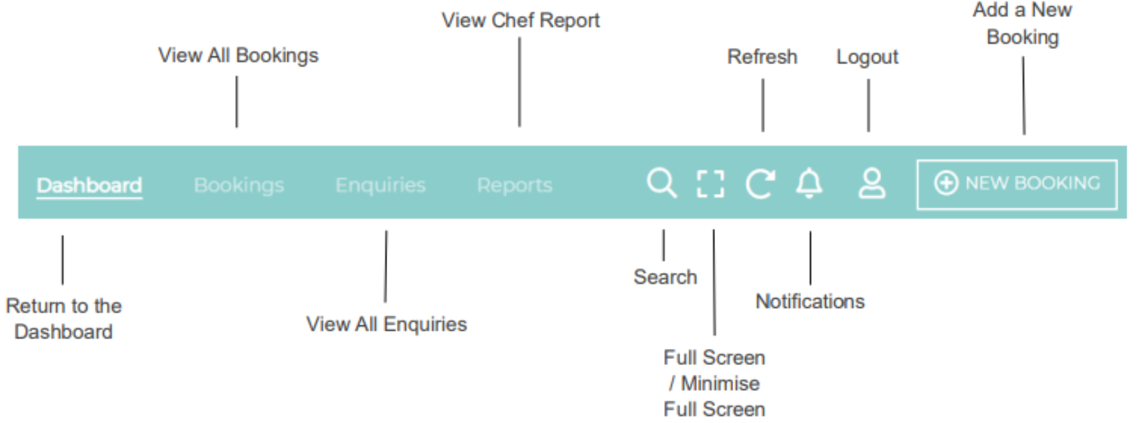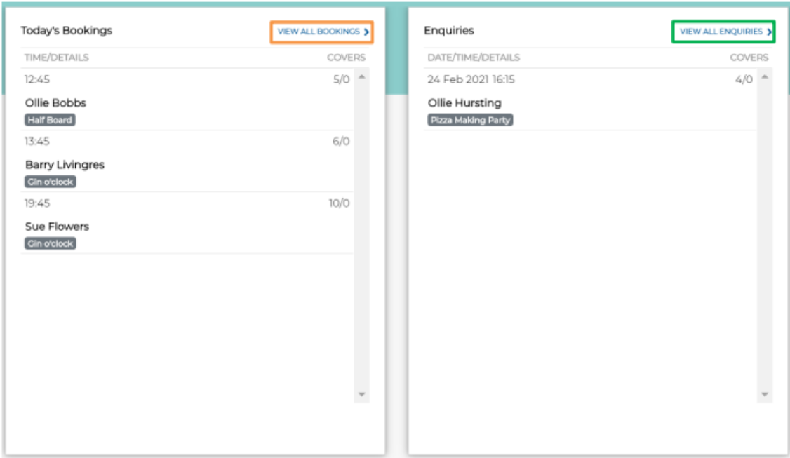 The Today’s Bookings panel will display all bookings for the current day; you are able to view all bookings by selecting Bookings on the top ribbon, or by selecting the VIEW ALL BOOKINGS link.