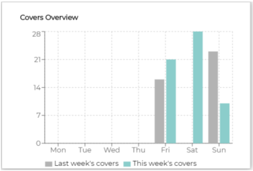 The displayed graph will show a cover comparison for last week and the current week. The grey bar represents the previous weeks covers, and the mint blue bar represents the current week covers.