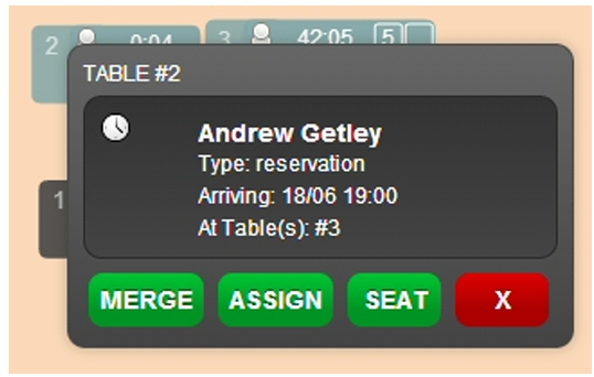 If a walk-in customer is seated on the PoS and then it is discovered that the customer actually had a booking, the booking details can be merged into the open account.
