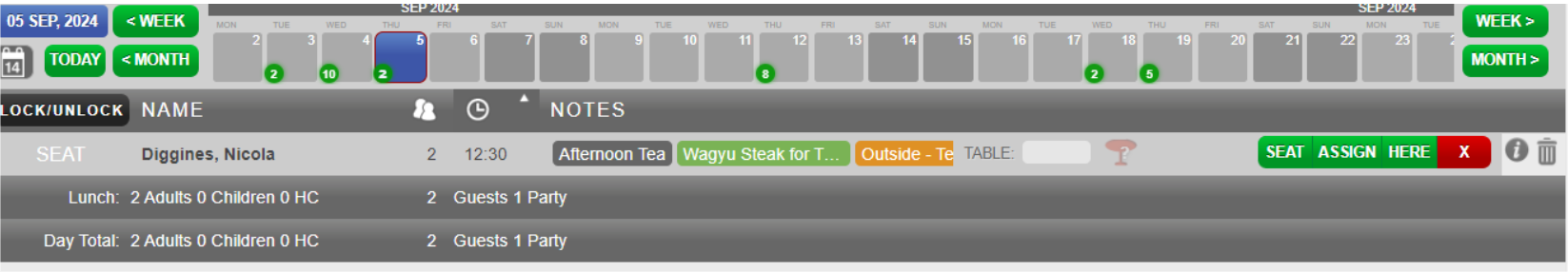 7. You must now reassign a table to this reservation, click on the green tick and type in the table number or click Assign