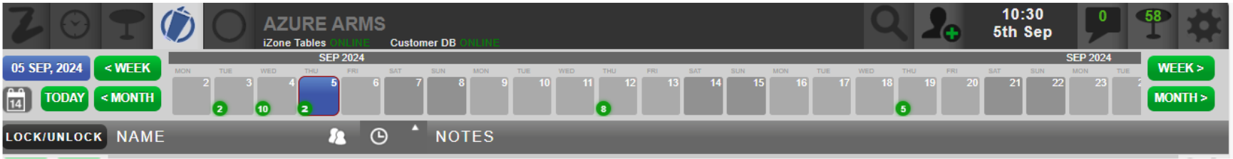3. You can navigate using the calendar drop-down box or scroll by week/month (if you do not know the date, you can click on the magnifying glass to search for the guest using their name, contact number or email address).