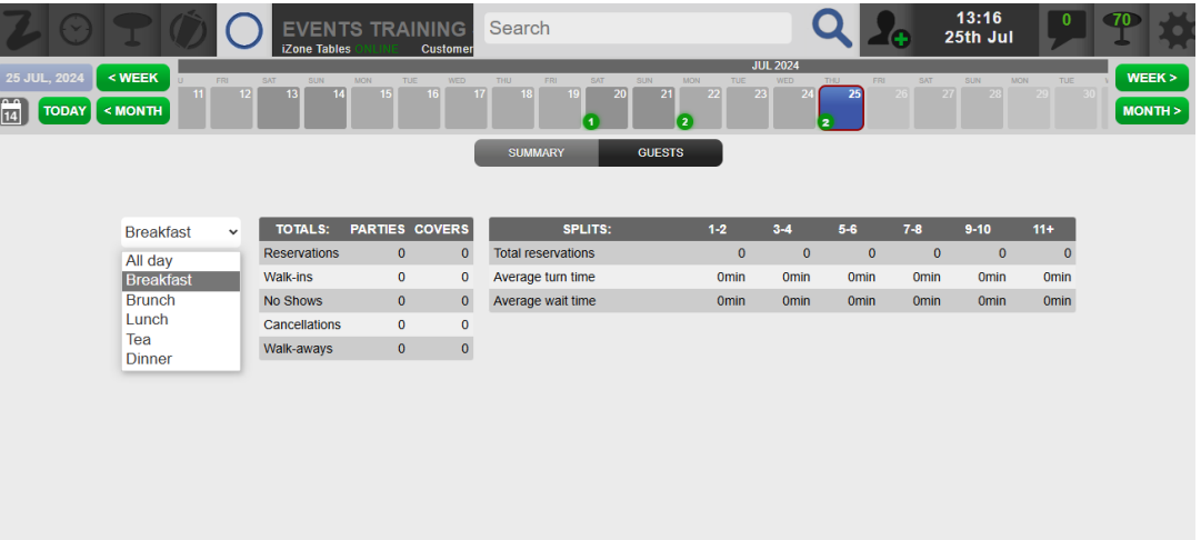 2. The Summary tab can be broken down into sessions such as Breakfast, Lunch and Dinner or can be viewed as a full day