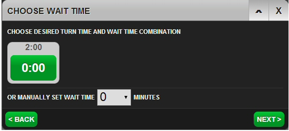 2. Select Back in the bottom left corner of the Enter Guest Details window. The Choose Wait Time window is displayed.