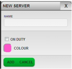 To put a server on duty, select a server’s name or select New to add a new server to the list.