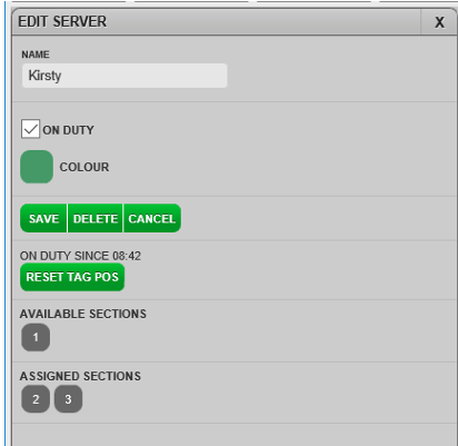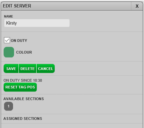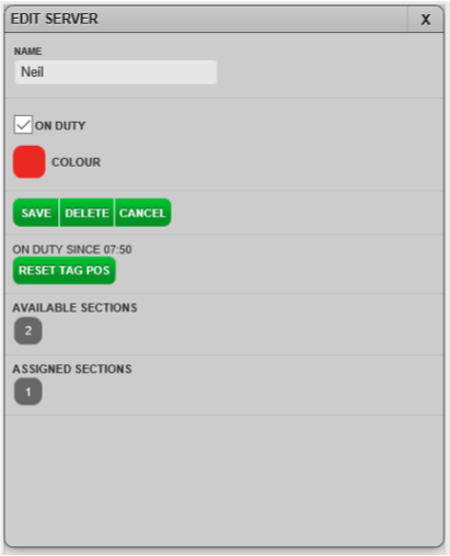 If the server is on duty now, tick the ON DUTY checkbox.