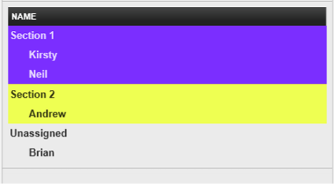colour coding to match the guest in the summary with the course currently served. (This colour is also replicated on the guest on the table plan.)