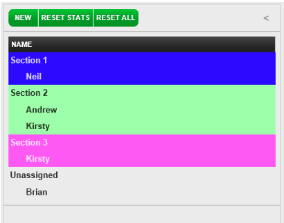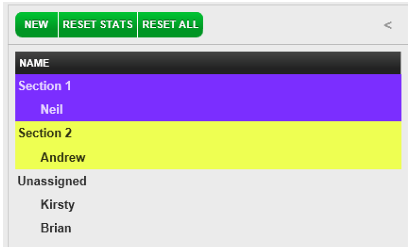 Selecting Reset Stats will reset the Party (P) and Guest (G) history for all servers. Selecting Reset All will unassign servers from their tables and clear all server statistics.