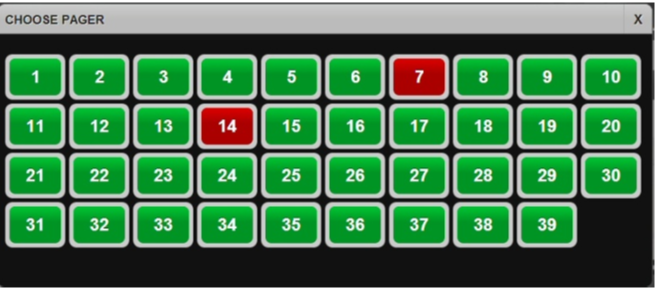 - Select an unallocated pager (green) or an allocated pager (red) to transfer the pager to the selected guest and remove it from the original guest. (Select OK to confirm the change.)
