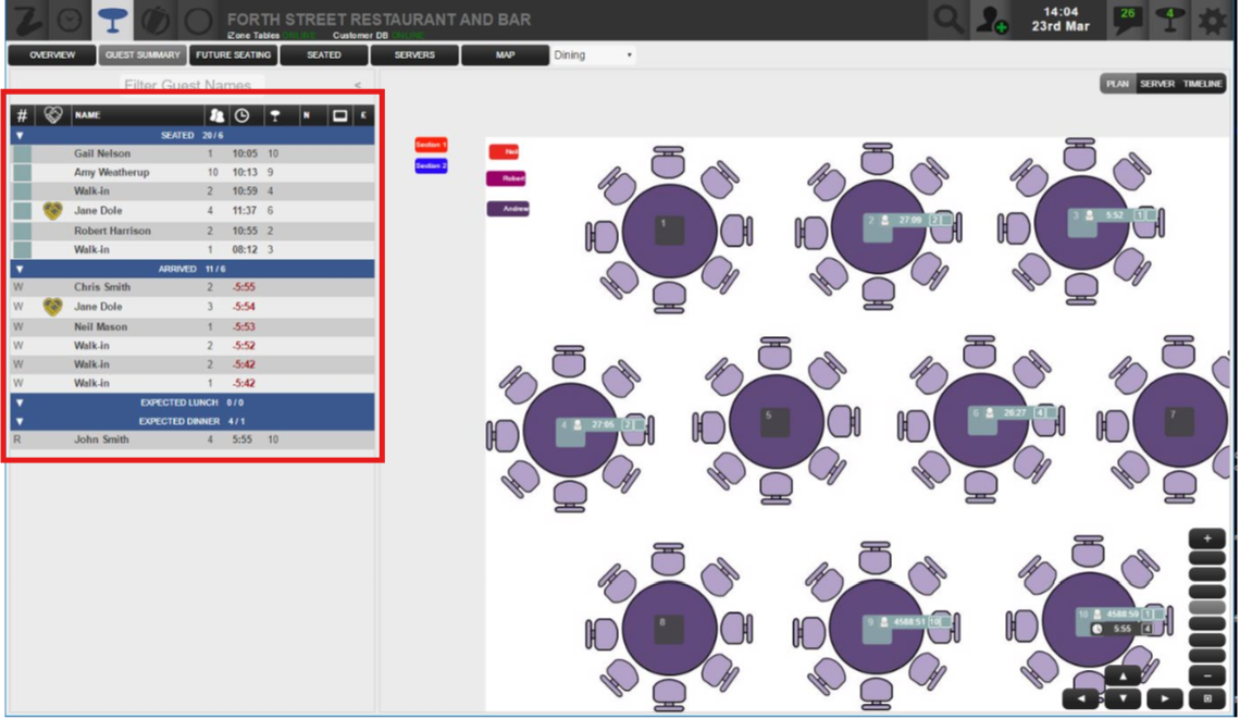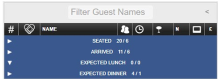 all guests until they are seated, altered or cancelled/marked as no-show (even if a session has passed, guests will remain in the list until they are removed manually.)