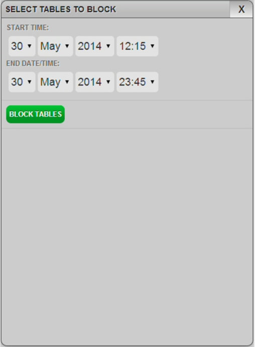 - Select the start and end time/dates between which you want to block the selected tables.