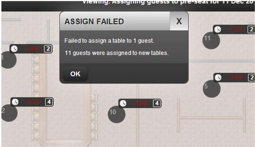 An information box is displayed to show how many guests were reassigned and the number of guests that couldn’t be reassigned.