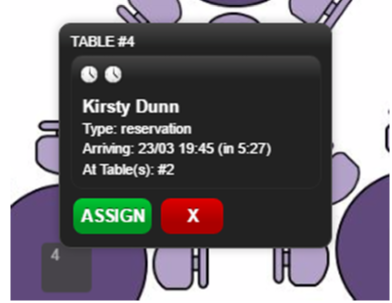 - Drag the cursor over the top of a table to assign the selected customer to that table.