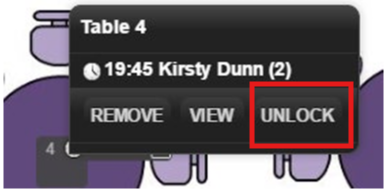 To reserve the table (so that it is not reassigned), select the table and choose Lock. The table is now reserved for that customer and will not be changed by any subsequent table shuffling. A padlock symbol is added to the Guest Queue to make it clear which tables are locked.