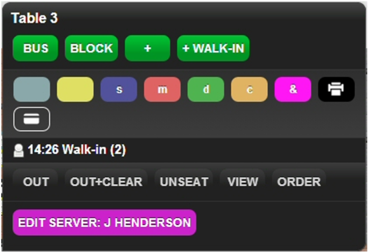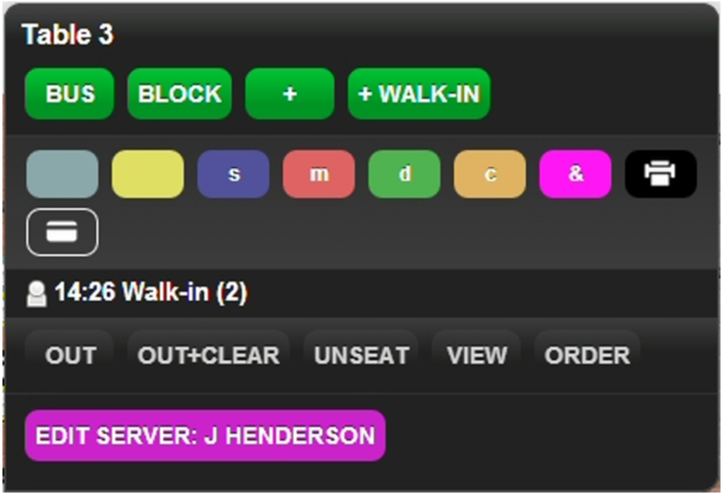 - Select Out when the customer leaves and the table needs to be cleaned.
